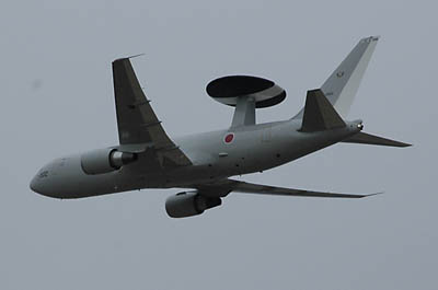 E-767AWACS 早期警戒管制機。上にくっついてる丸い物はレーダーで、敵機や不審機の補足、監視に使われます。