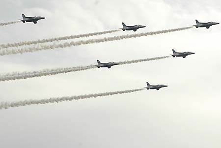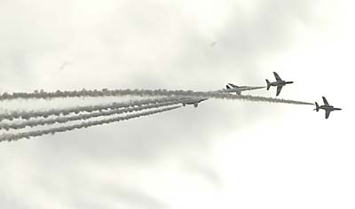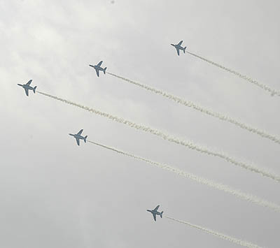 どうやら、カラースモークによるカラフルな飛行は廃止された模様で、今後見ることはないのでしょう。曇り空に白のスモークであまり映えず、ちょっと残念ではありました。 | | |