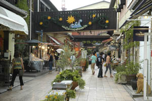 モザイク、阪急百貨店、ダイエーなどのお店が並んだ神戸駅から海側の商業地です。見える観覧車はモザイクガーデンという、ちょっとした遊園地。