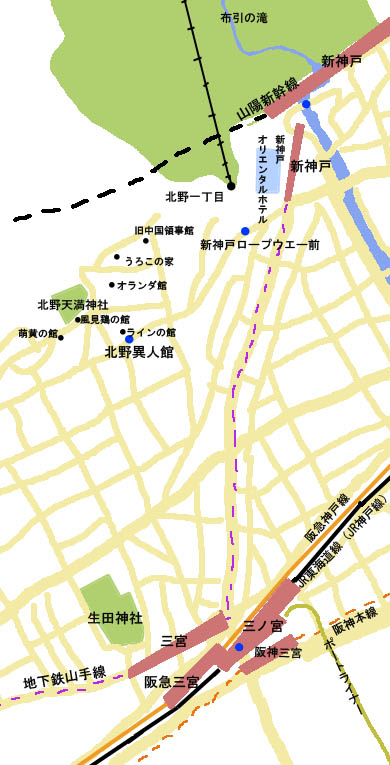 三宮駅から北野通を徒歩で北上してもつきますよ。でも、かなりの坂です。