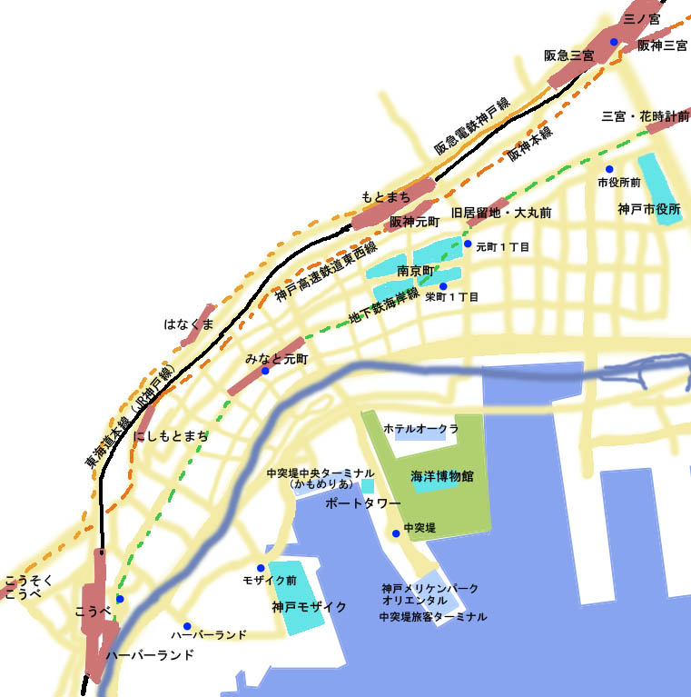 三宮駅・神戸駅までは、梅田駅・大阪駅より、JR、阪急電鉄、阪神電鉄で行くことができます。