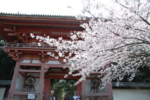 桜は少ないものの、三門あたりにちらほらと。閉門間際で人がいなく、よかったかも。