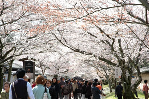 両側に桜の木が植わっています。もちろん、人もいっぱい。。思索にふけってる場合じゃないってくらい人、人、人・・・