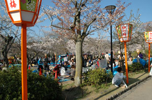 円山公園は、花見の場所取りの人の嵐でした。