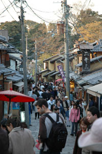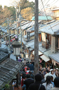 高台寺から清水寺まで、古風な街並みを残す二年坂、三年坂を通る。清水の子安観音へ安産祈願する参詣道にあたるところから「産寧坂」とも呼ばれているそうです。