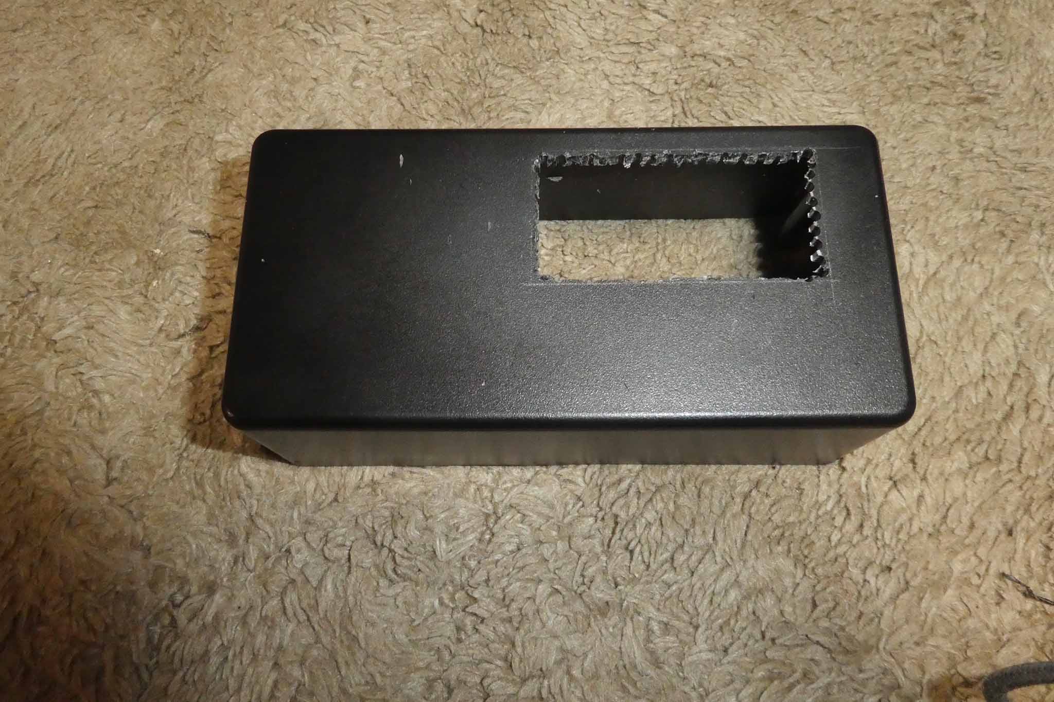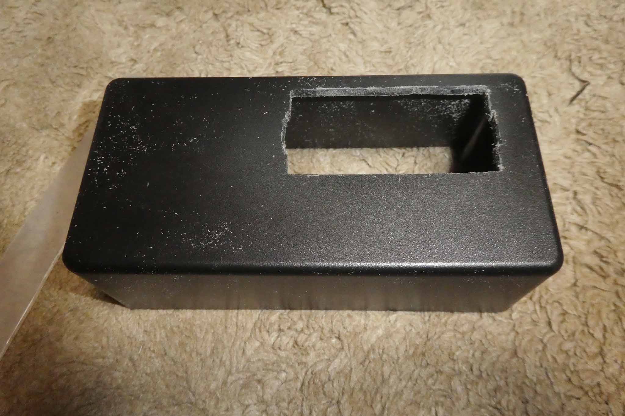 ヒューズボックス用の穴、トグルスイッチ用の穴をあけてケースの加工が終わりました。