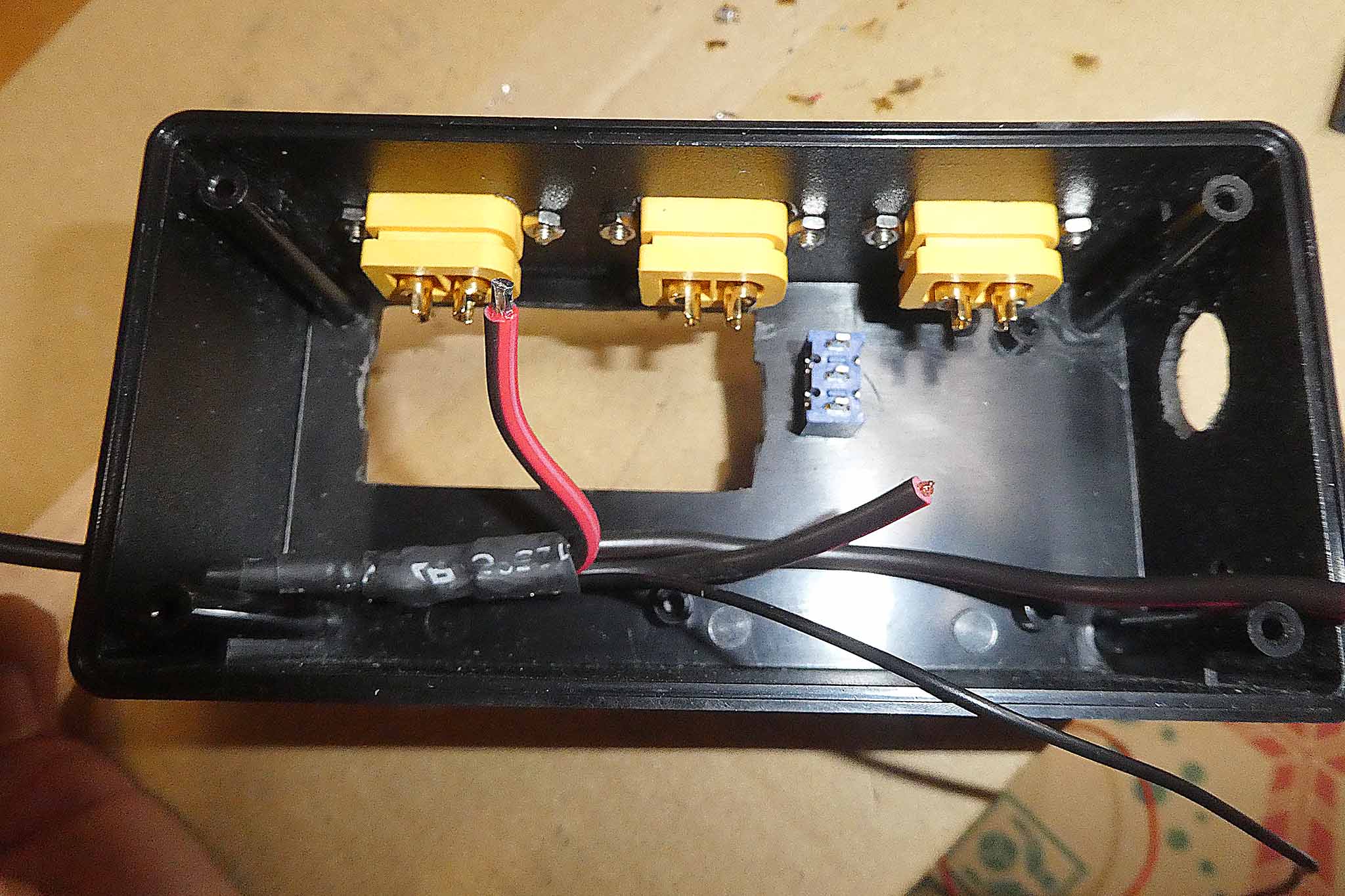 仮にXT60の端子が逆側であってもトグルスイッチとヒューズボックスの干渉が苦しかったです。