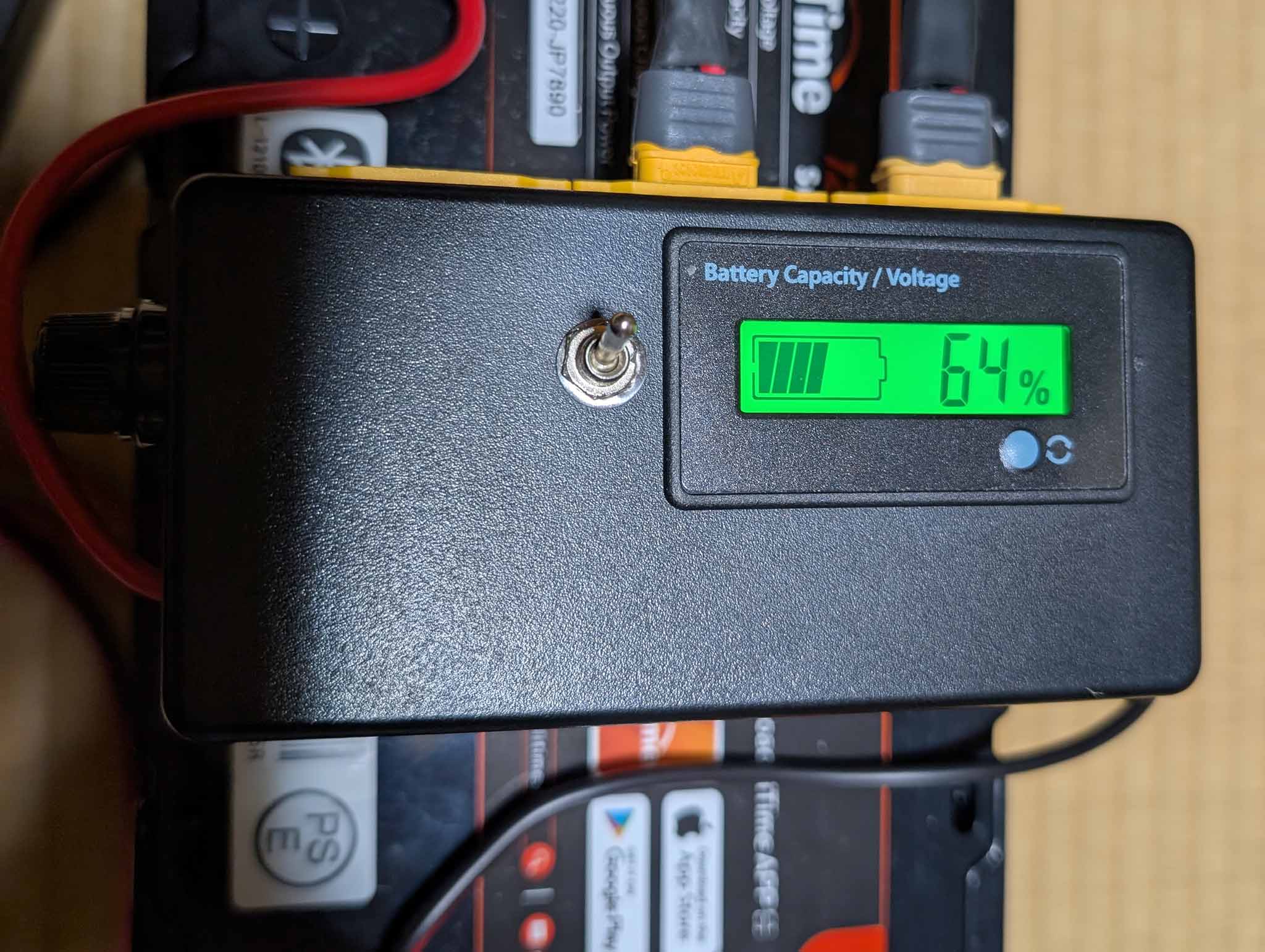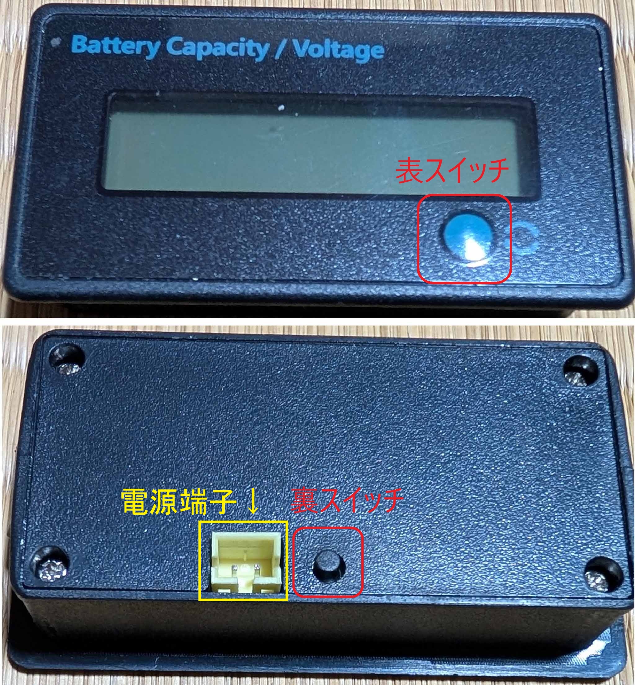 こちら(YFFSFDC デジタル電圧計 バッテリー残量表示計)があまりに安いこともあって、目安程度になればいいかなと思って購入しました。