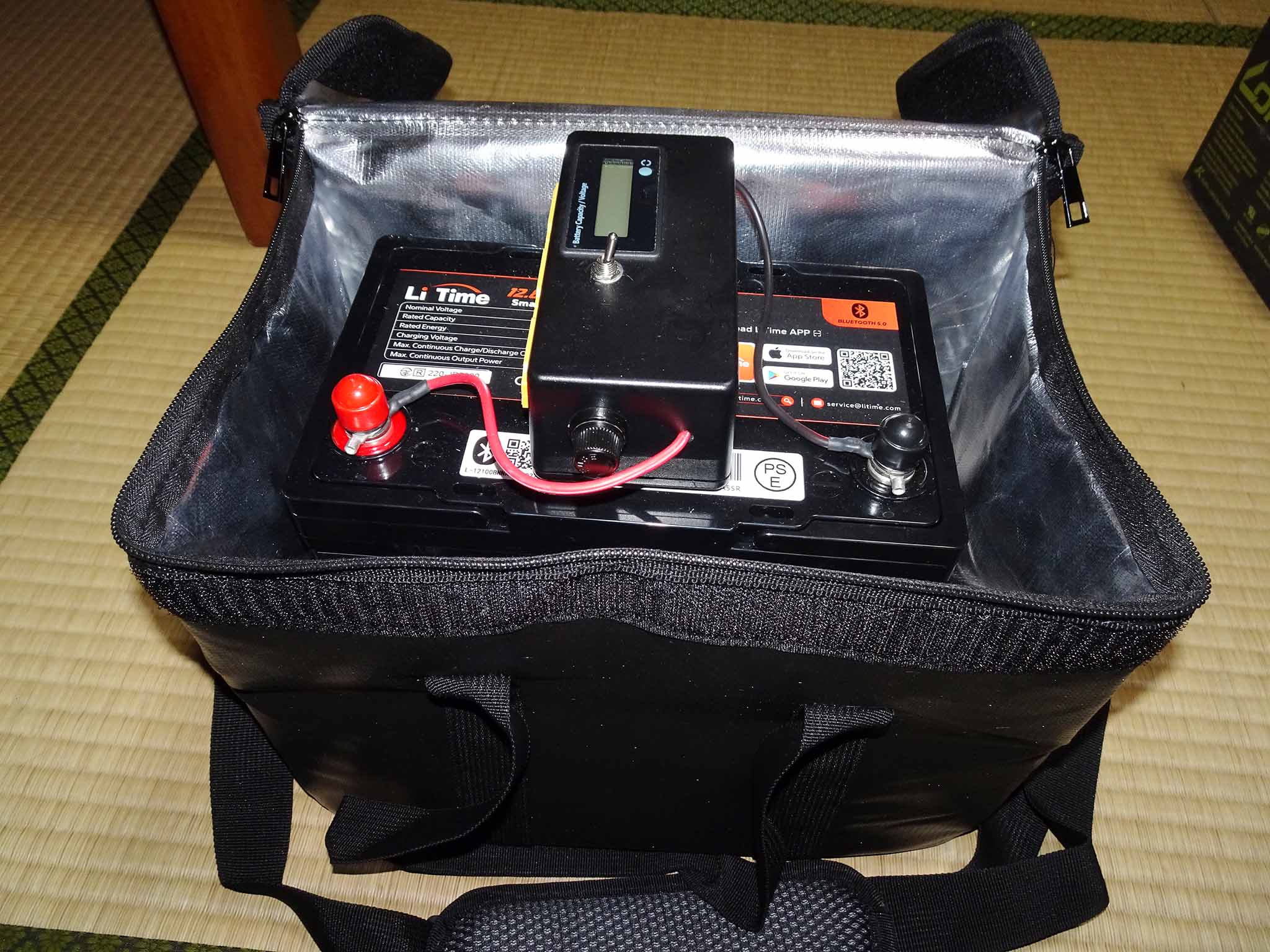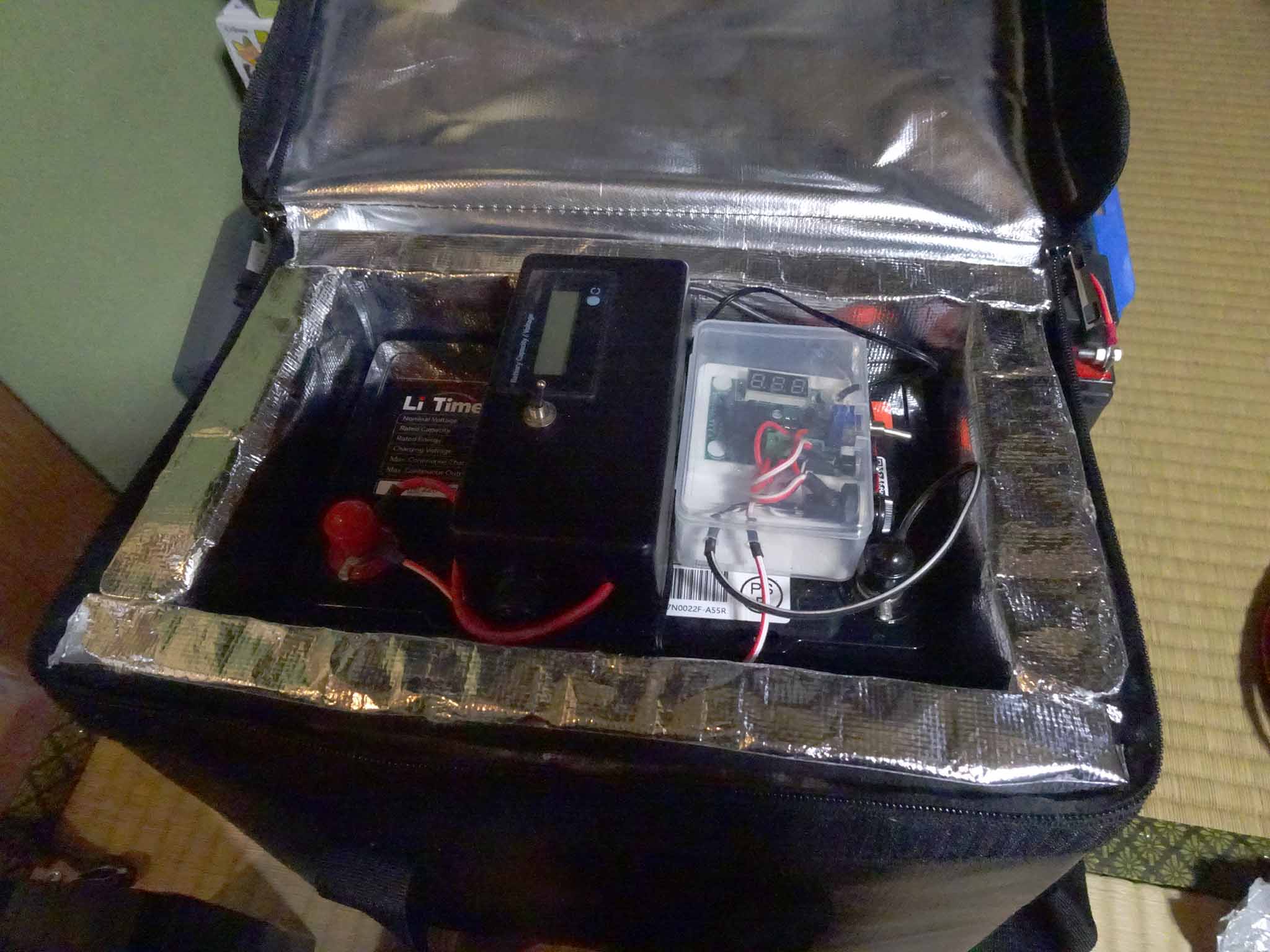 鉛バッテリー運用時には、バッテリーを裸で使用していて、それでも運用上電力不足を感じていませんでしたが、バッテリーの温度はできれば気温の影響を受けないようにしたいと思っていました。