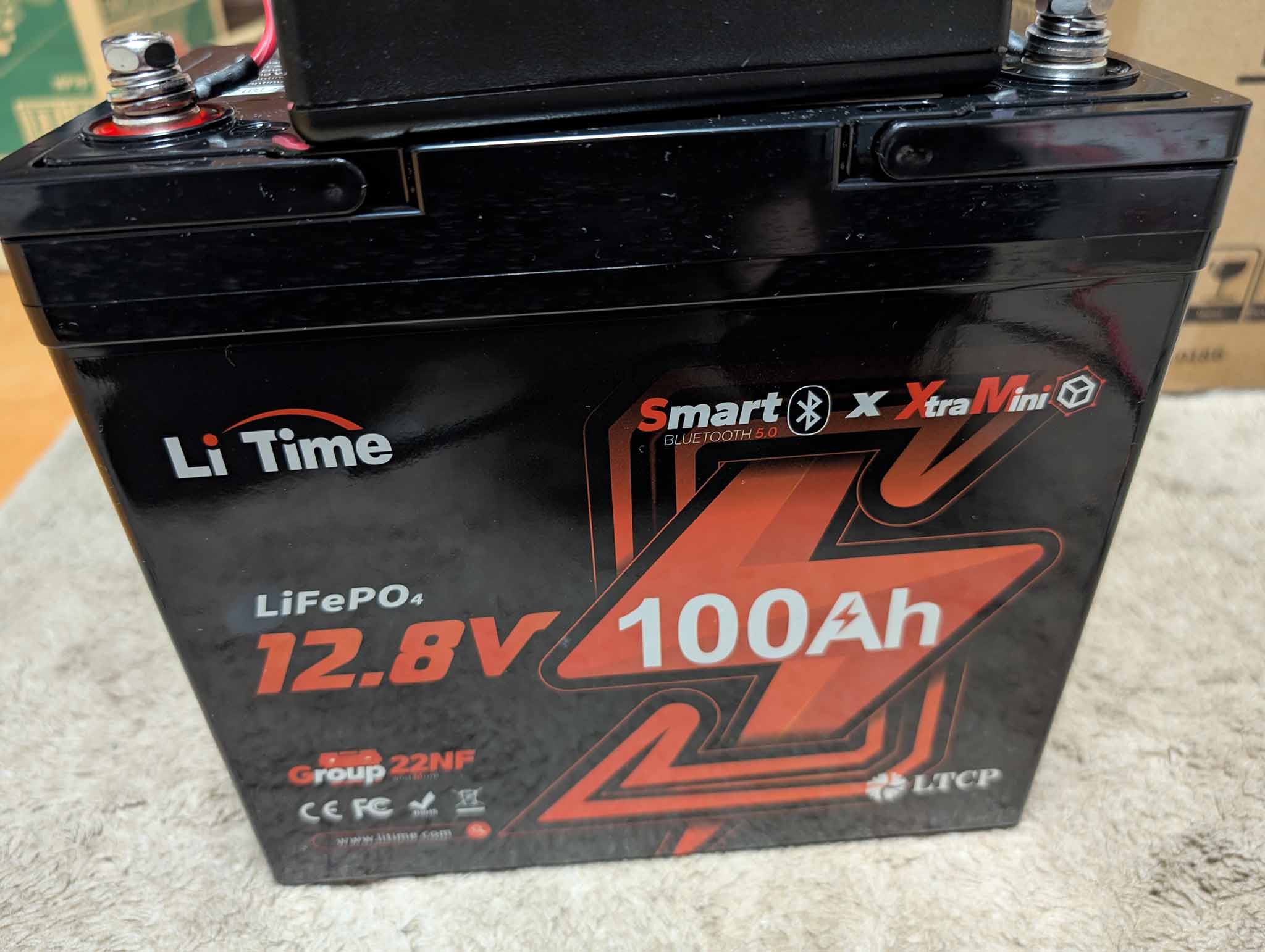 Bluetooth付きが欲しかったのですが、楽天で「Bluetoothなしの100Ah miniと20A充電器のセット」が安かったので購入しました。