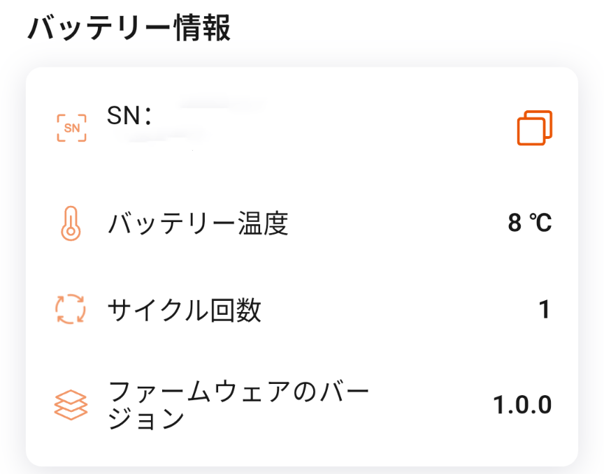 この画像はスマホのアプリからバッテリーの状態を表示したものです。