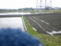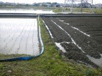 ここは波板を設置したあるので、畦の上に載せて波板との隙間を埋めただけ。