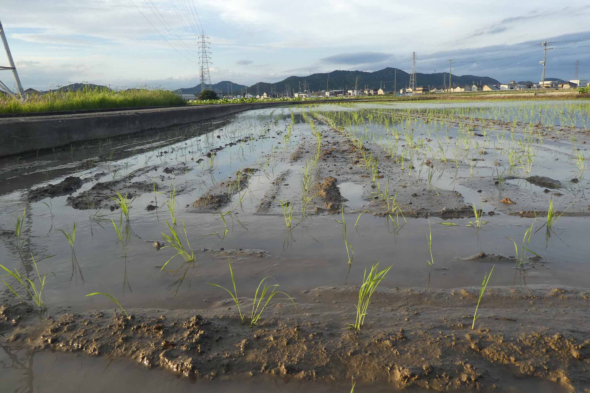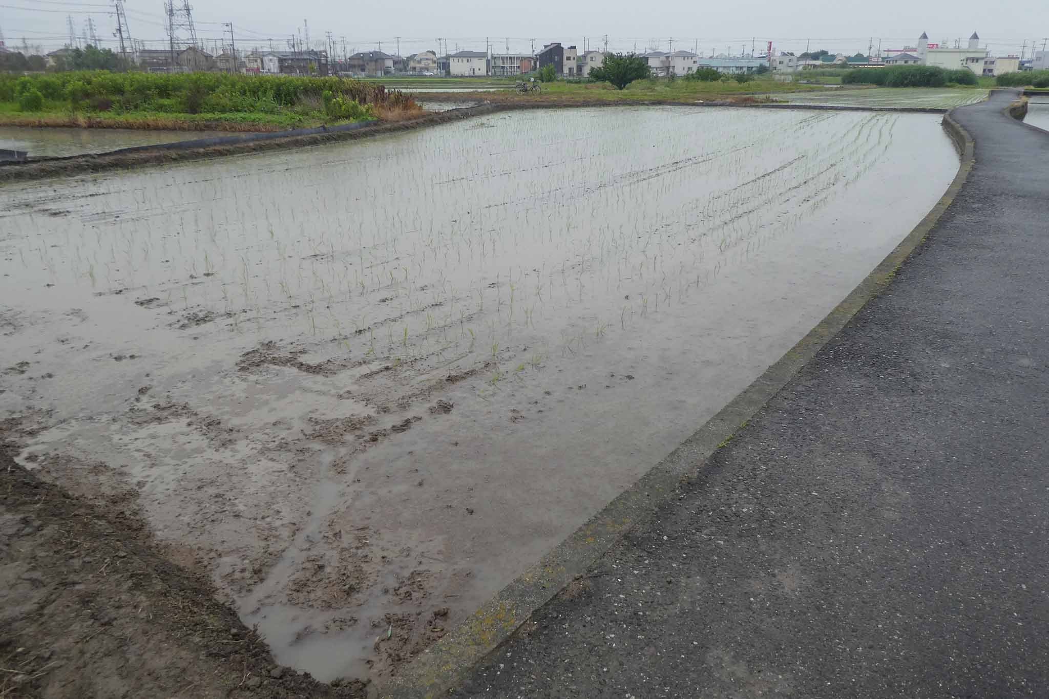 しっかり植わってます。ただ、今回、水が多めのまま植えたせいか浮き苗が多くて、差し苗をがんばりました。