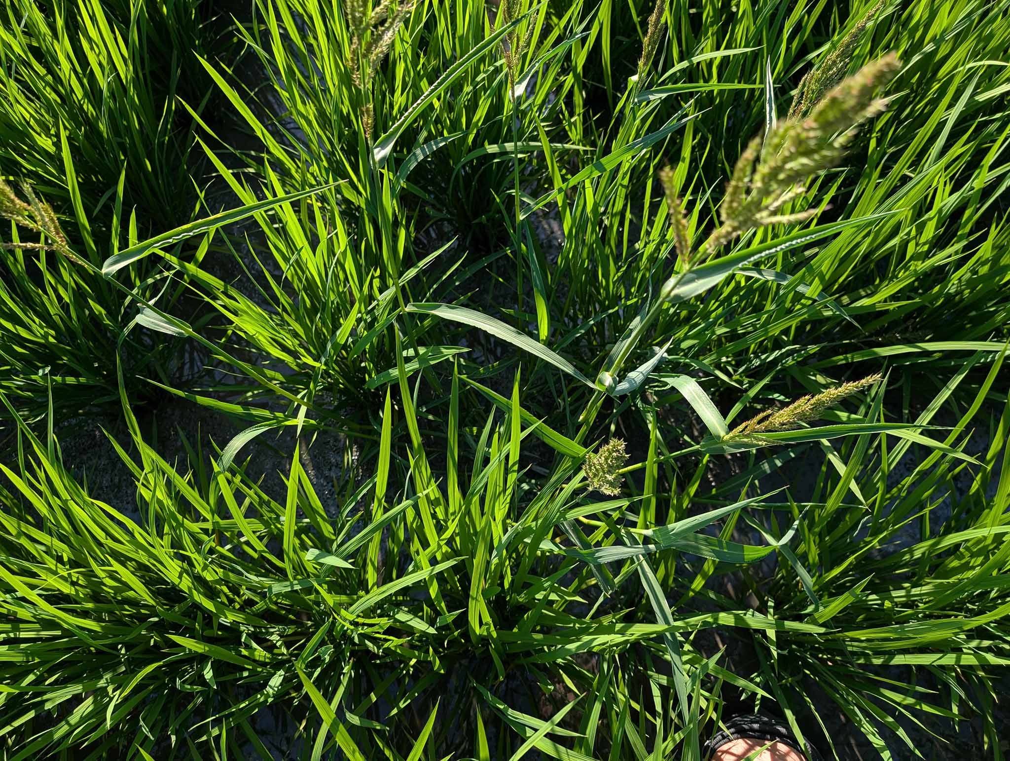 刈払い機で草刈り後に田んぼを観察してみると、圃場の中に伸びる草を見つけました。