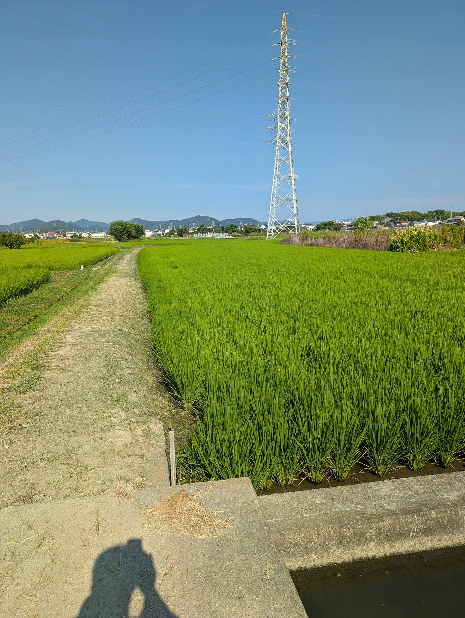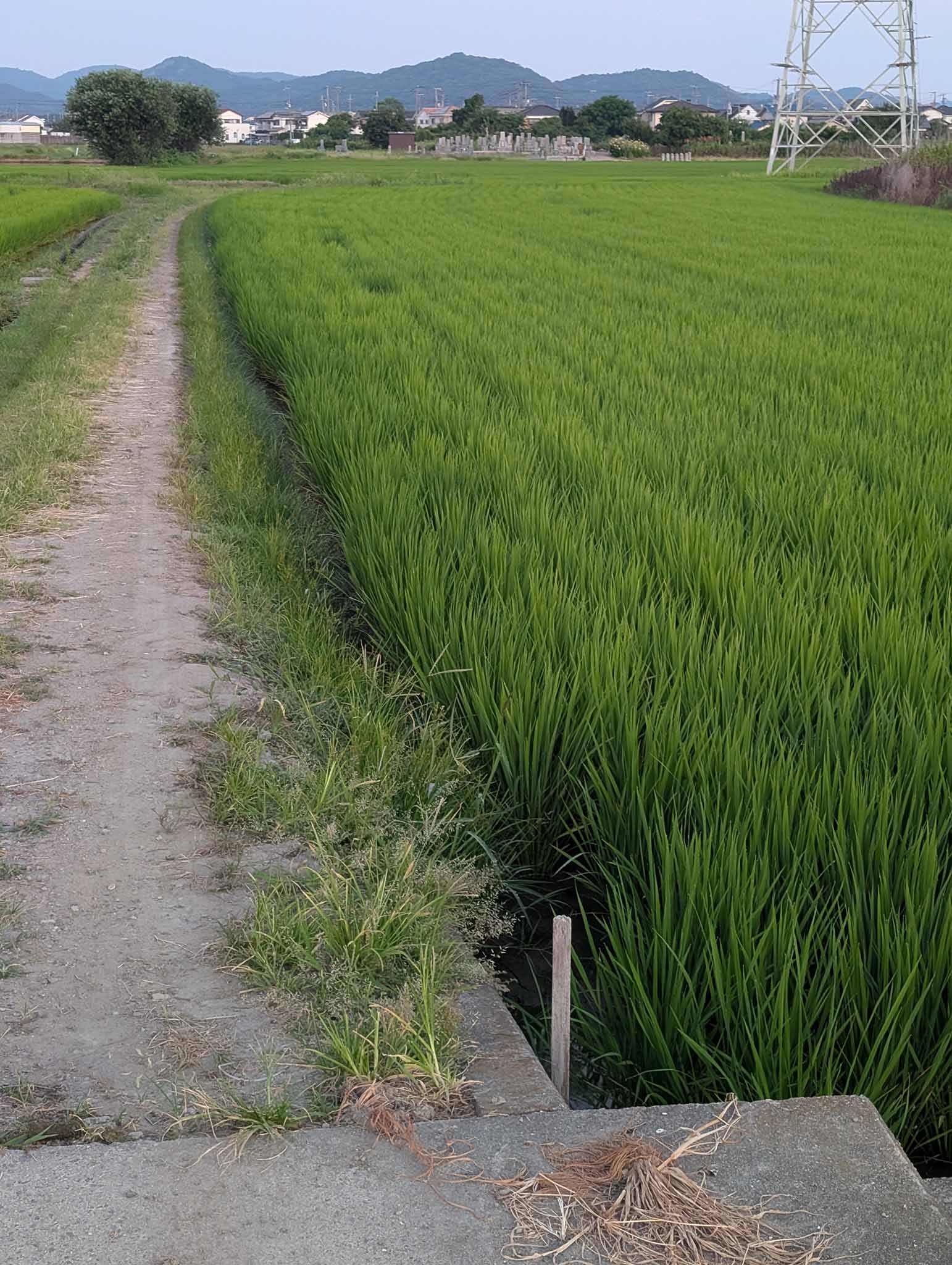稲は元気に生育中です。この日は草刈りと穂肥散布を行いました。